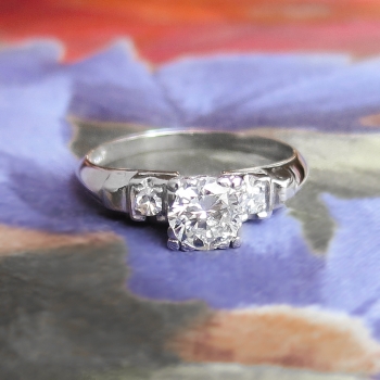 Jewelry Finds Archive Vintage Retro 1940's .68ct t.w. Old Transitional Cut Diamond Engagement Ring Platinum