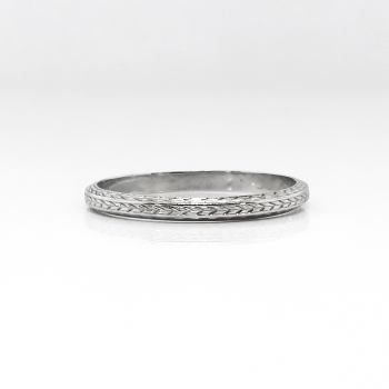Vintage Size 8.25 Art Deco 1930's Belais Hand Engraved Eternity Wedding Band 18k White Gold